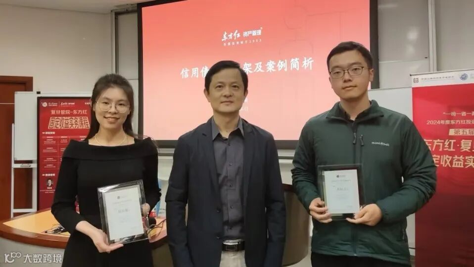 本年度第二节课程由东方红资产管理固定收益研究部信用组组长陈玄璇和研究员黄基力授课,分别为同学们详细介绍了信用债研究框架和转债投资策略。复旦大学本硕博教育中心主任密凯为授课讲师颁发证书。