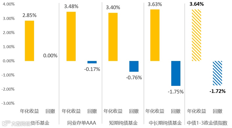 本文我们将继续为大家介绍政金债指数基金,并将其收益表现与常见的短债基金、中长债基金进行对比。