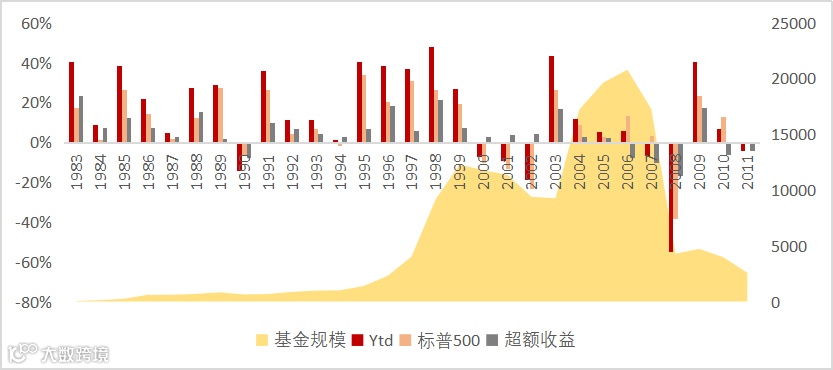 还是以比尔·米勒为例,他的投资“甜区”是在1995-1999年,在此期间米勒的管理规模适中,超额收益稳定。然而投资者并不一定能将这一时期的米勒选出来,因为他这时候还不够知名。而FOF基金在挑选基金产品的时候通常将定量研究和定性研究结合在一起,有助于前瞻性的发掘优秀基金经理。