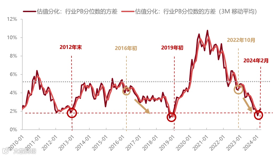 图11:2024年初行业估值方差降至历史低点
