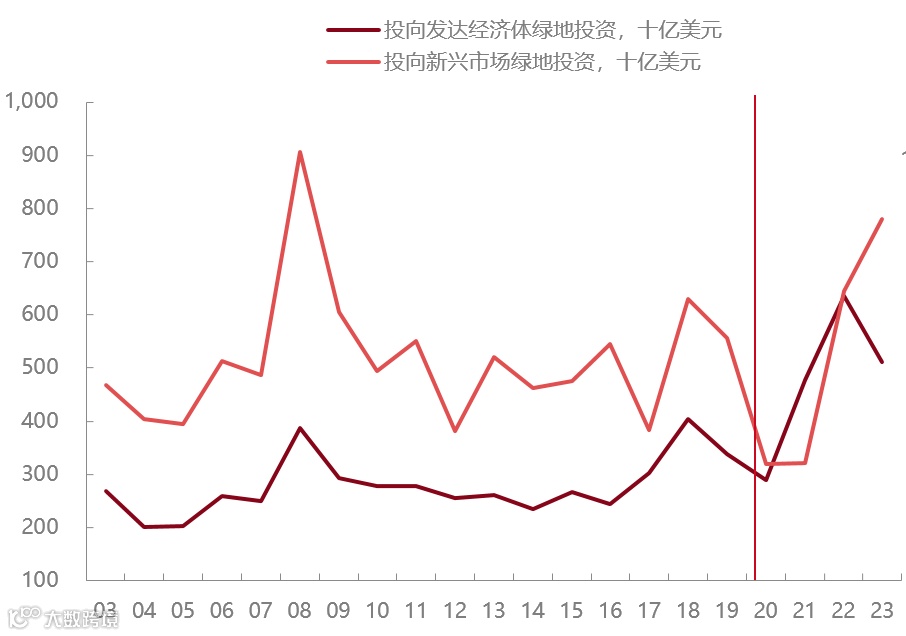 图5:2023年新兴市场接受的FDI投资快速上升