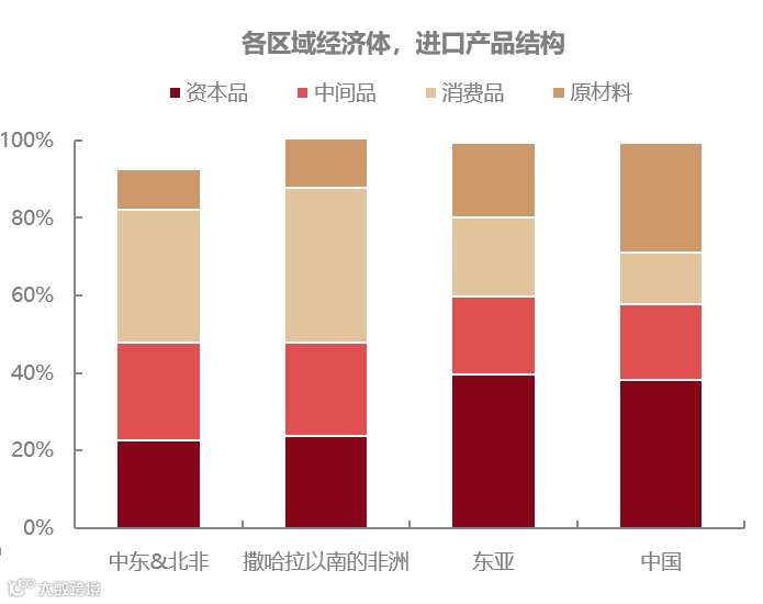 图6:中东、非洲国家的进口结构中资本品占比偏低