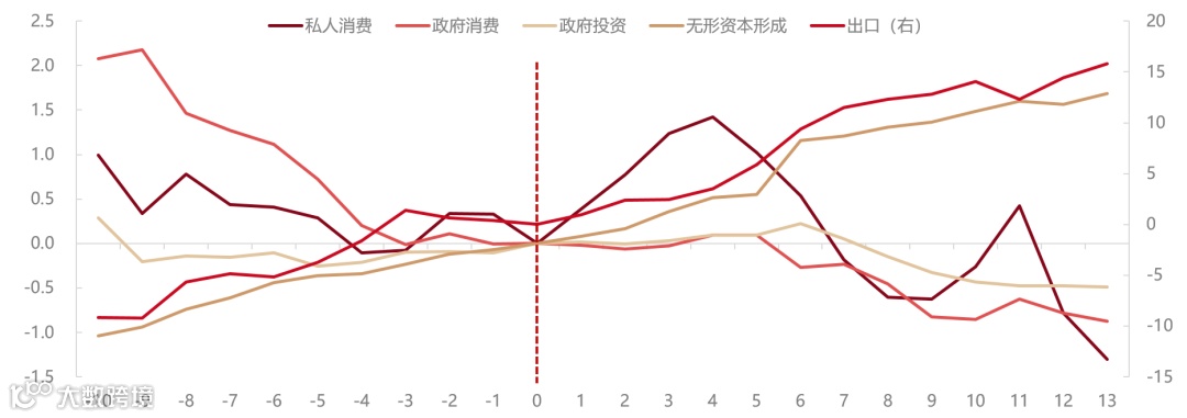图8:主要经济体后地产时代的年度GDP分项比例平均变化