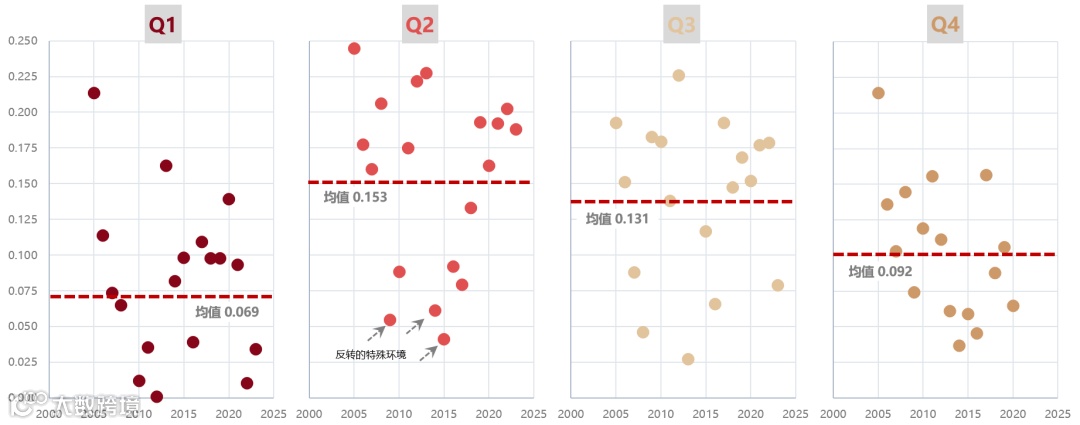 与该季度涨幅的相关系数