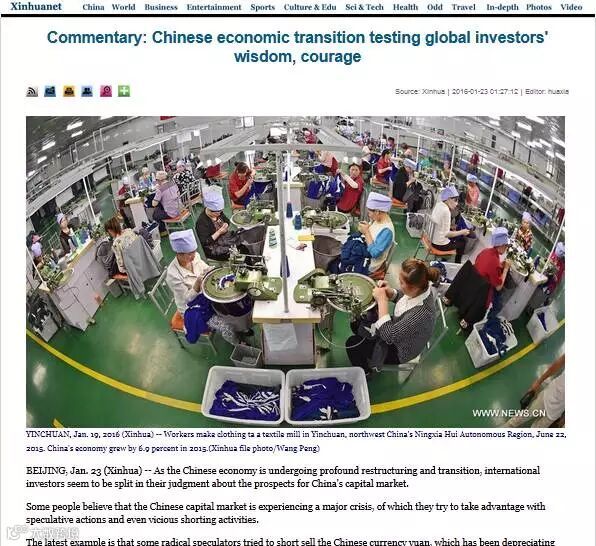 新华社23日发表英文版评论文章,题:中国经济转型测试全球投资者的智慧和勇气。文章警告称,企图恶意做空中国资本市场的投资者将面临巨大损失。