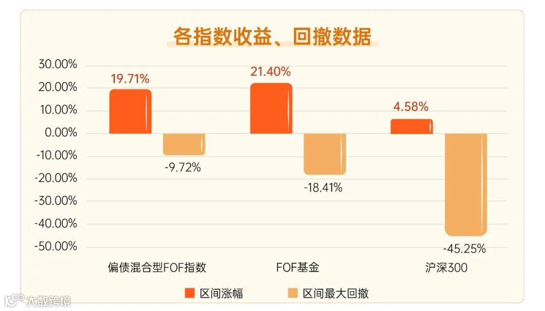 长期来看,偏债混合型FOF指数相比FOF基金指数、沪深300指数整体风险收益性价比更加突出。