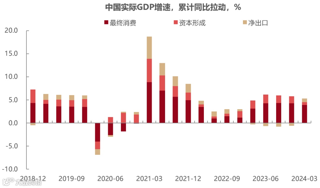 图1:2023年中国内需及外需均弱,2024年Q1外需改善