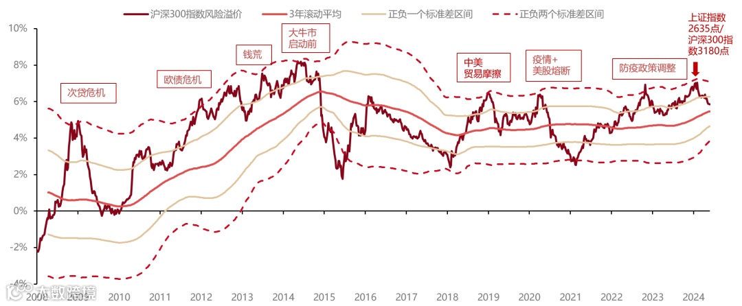 2月初上证指数跌至历史性底部区域,绝对估值已经低于2018年和2022年底部,隐含风险溢价(ERP)达到了3年滚动均值以上两倍标准差水平,这往往也是历史上指数底部的估值特征,中长期看市场低点或已出现。