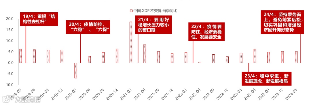 图4:2018-2024年4月重要政策会议基调变化
