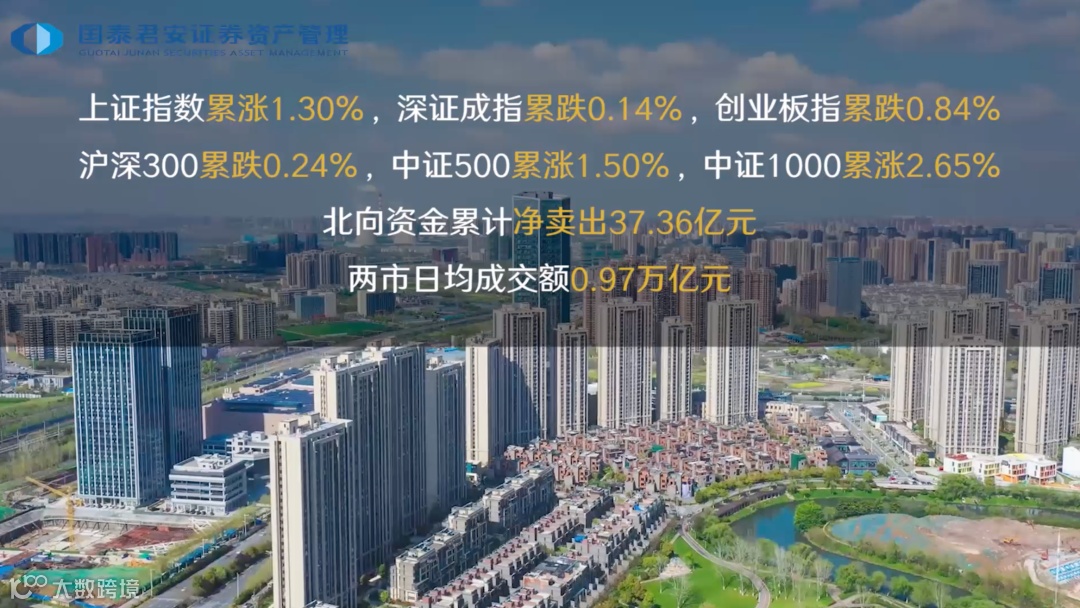 最近一周A股主要指数涨跌互现,上证指数累涨1.30%,深证成指累跌0.14%,创业板指累跌0.84%,沪深300累跌0.24%,中证500累涨1.50%,中证1000累涨2.65%。北向资金累计净卖出约37亿元,两市日均成交额跌破1万亿元。