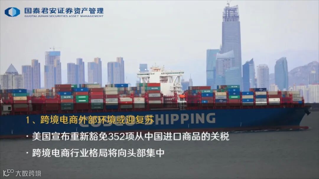 2022年跨境电商行业格局将向头部集中。一季度出口增速有削弱趋势;当前地缘政治冲突也给出口造成较大的不确定性;此外,国内多地疫情冲击也有可能对出口物流造成一定影响。因此中小跨境电商将面临较高生存压力,行业格局或会向头部公司集中。