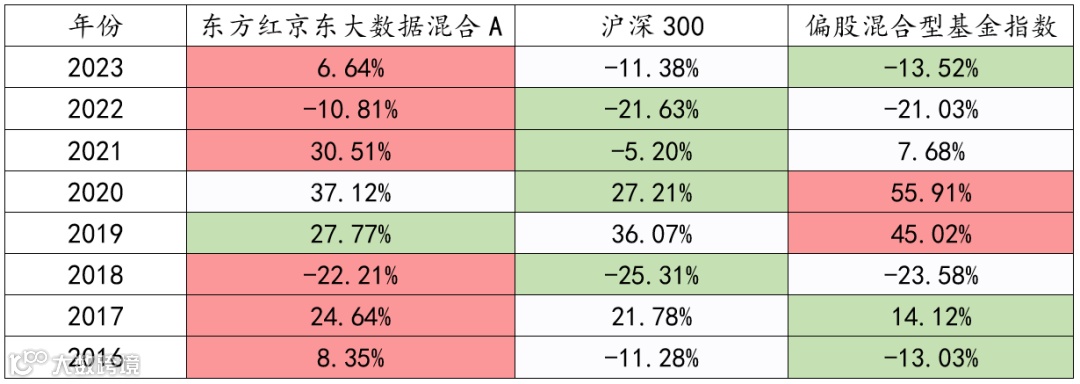 表:2016年以来东方红京东大数据混合A年度业绩表现
