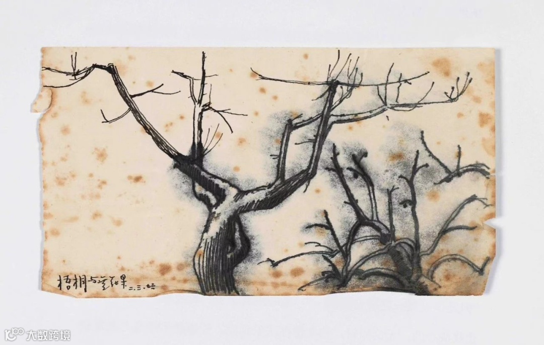 图2:《梧桐与无花果》,1976(目前保留下来的最早一件草稿),原作在东一美术馆展出