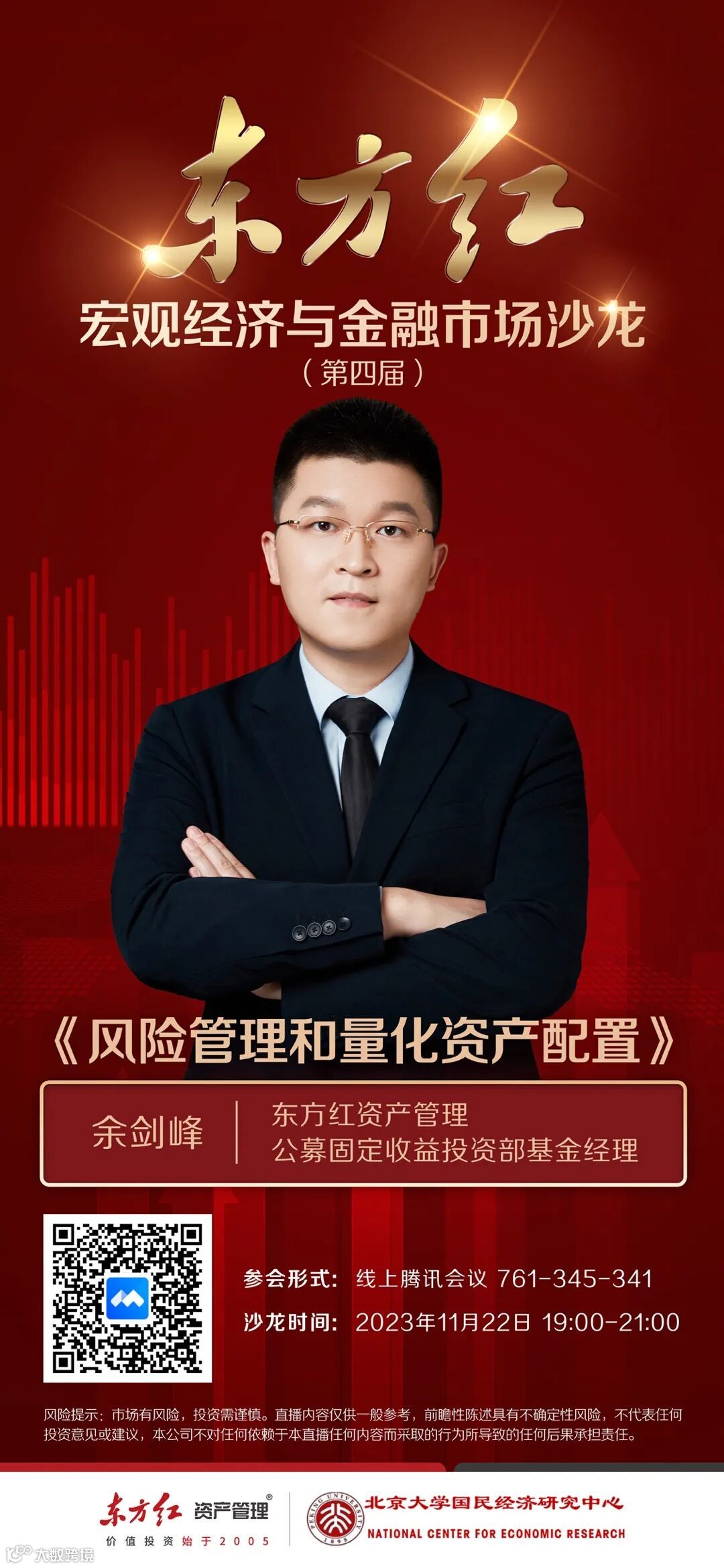第四届“东方红•宏观经济与金融市场沙龙”共计六场活动,将通过腾讯会议以线上形式举行。2023年11月22日,本届研讨会将迎来备受期待的第二期活动,将邀请东方红公募固定收益投资部基金经理余剑峰、上海财经大学首席经济学家中心主任金融学院副院长朱小能以及中信建投基金固定收益部高级副总裁李照男,与您共同探讨风险管理、资产配置、债市投资等相关议题。