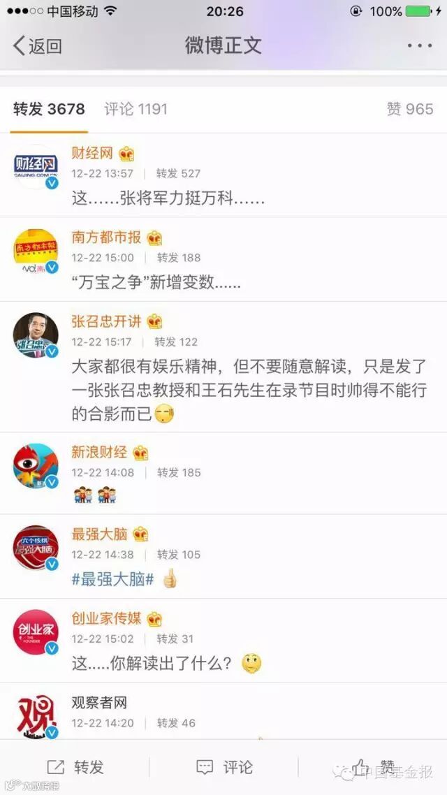 不过,有熟悉安邦路数的人士分析,安邦不太可能随便给姚老板捧场子,除非王石的下一步重组影响到了双方的利益,双方不太可能结成盟友。