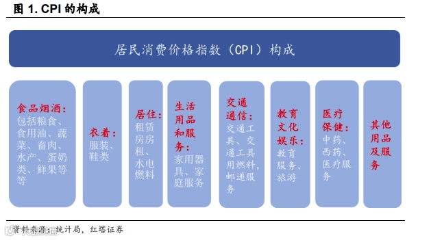 居民消费价格指数(CPI)是指度量居民生活消费品和服务价格水平随着时间变动的相对数,综合反映居民购买的生活消费品和服务价格水平的变动情况。简单来说,就是衡量与生活领域密切相关的商品和服务的价格走势,比如食品烟酒、衣着、居住、医疗保健、交通通信等,是我们日常重点关注的物价指标。