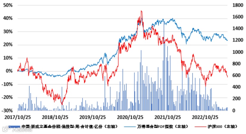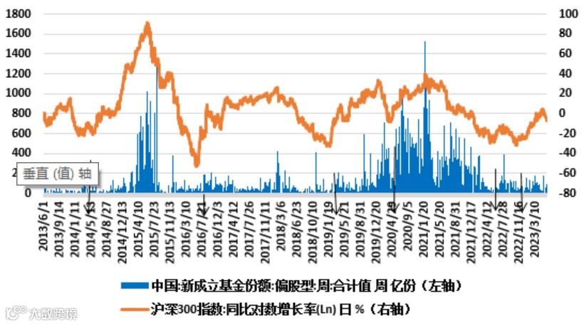 机遇往往潜藏于冰点之时,从过去10年数据看,以沪深300指数涨速及新成立偏股基金份额为例,偏股型基金发行低点意味着市场情绪的低落,情绪的冰点也往往是市场的转折点。