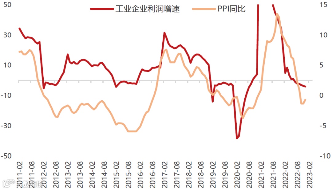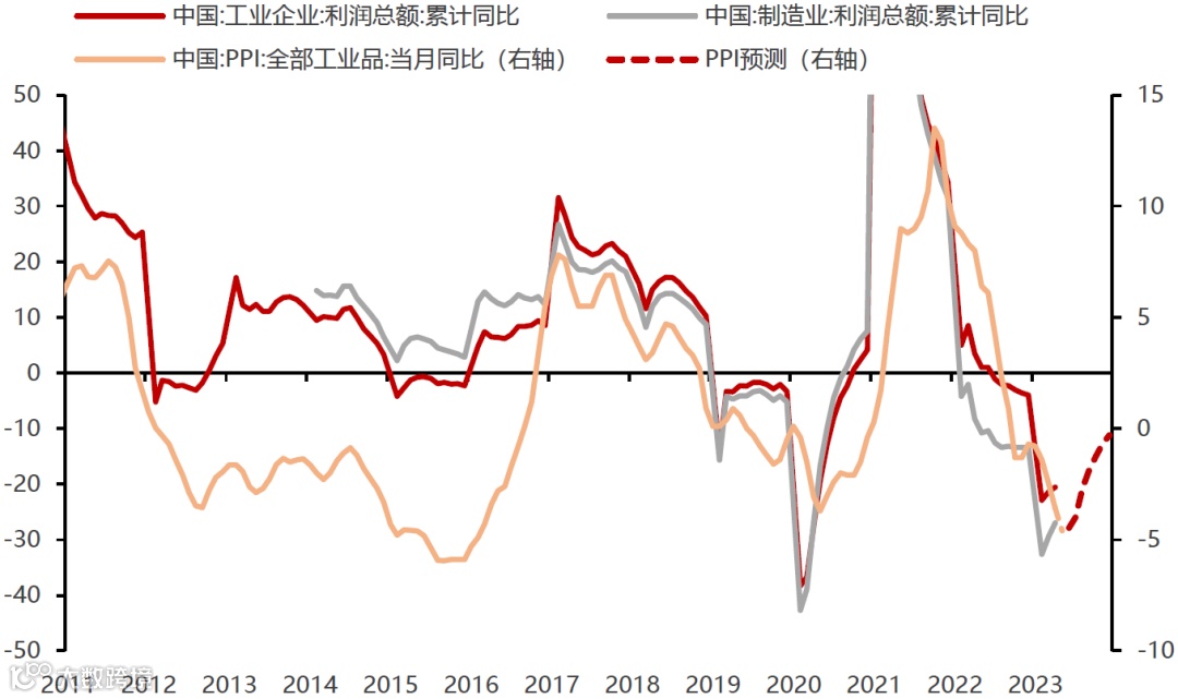 图12:传导路径为PPI→工业企业利润→A股盈利