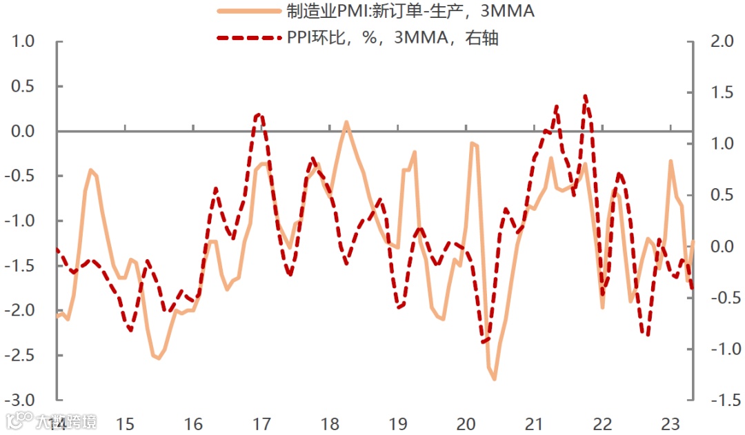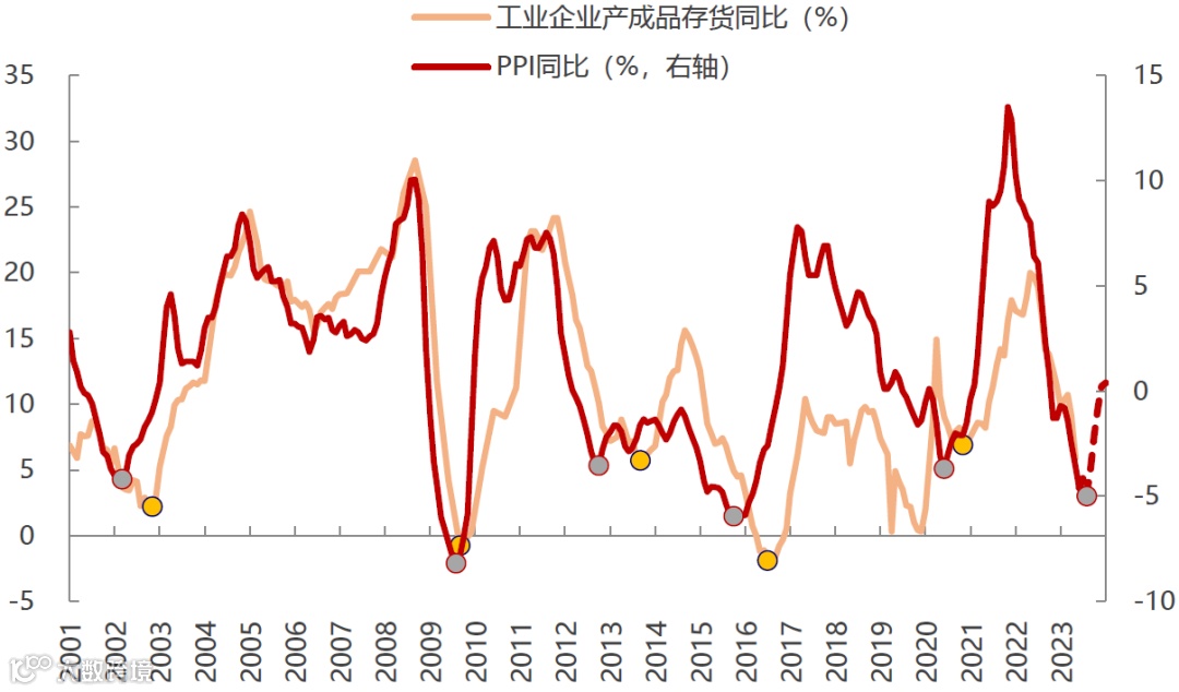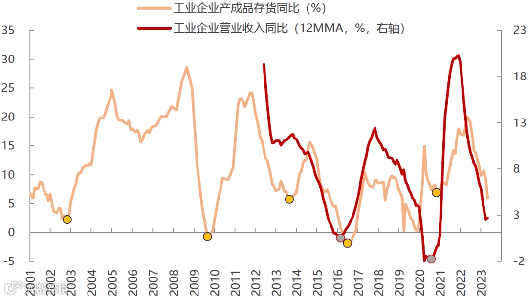 当前中国经济处于主动去库存阶段,放大了经济“需求不足”的感受。参考历史上库存周期的时滞规律,如果本轮库存增速在2024年初见底,那么有可能在2023年四季度进入被动去库存阶段。当经济进入被动去库存阶段时,通常供需环境已有所改善。当然,具体时点仍需观察本轮后续需求政策以及去库存进程。