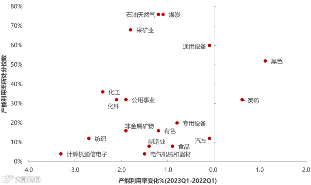 图4:需求疲弱使得大部分行业产能利用率降至历史低位