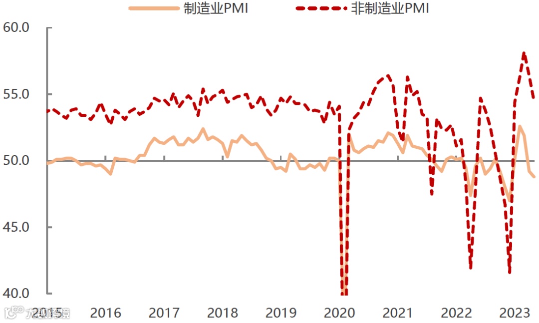 本轮经济修复表现分化,呈现“弱复苏,强分化”特征,前期受疫情影响更大的服务业展现较强的复苏弹性,而工业复苏乏力。2023年1-5月服务业生产指数累计同比达到9.1%,同期规模以上工业增加值累计同比仅为3.6%。