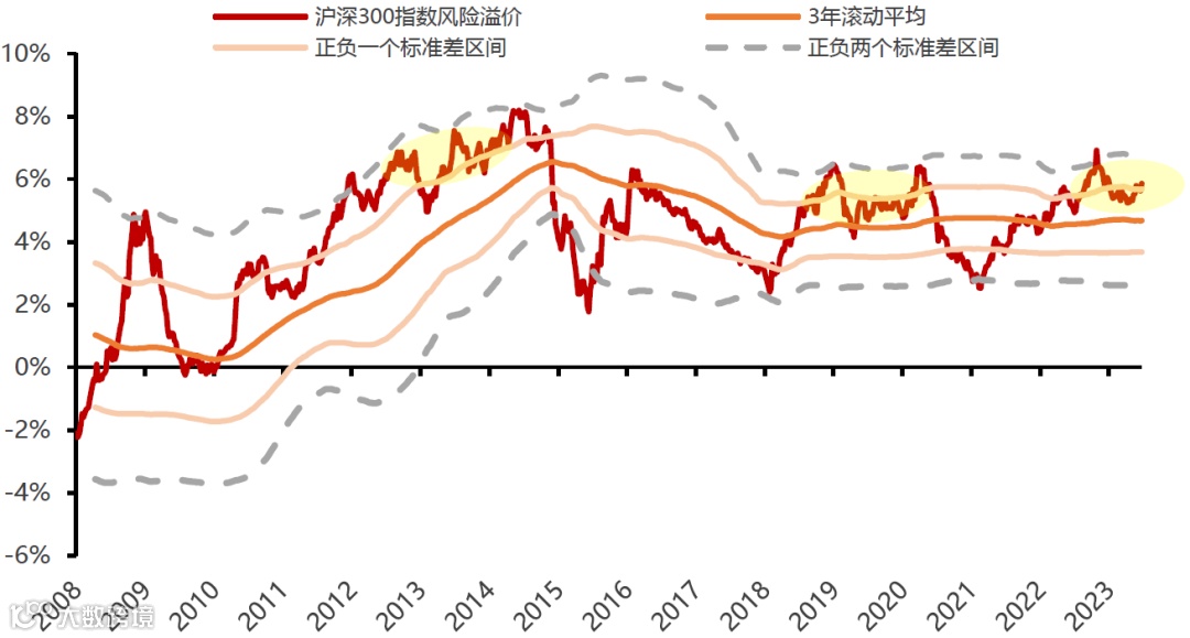 经济预期导致股权风险溢价难以有效下降,进而压制A股。风险溢价是经济增长的函数ERP=f(g),在经济弱复苏的年份,风险偏好的修复往往有“天花板”,如2013-2014年、2019年的风险溢价中枢和波动区间也都出现了上移,较难回归到均值以下的位置。当下对于长期增长和地缘政治的悲观预期,制约估值修复的空间。