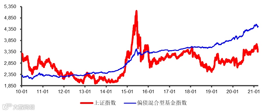 纵观过去十年,沪指跌宕起伏。而作为“固收+”典型代表的偏债混合型基金指数整体波动较小,“一步一个台阶”,整体呈现向上走势,震荡行情中表现依然可圈可点。