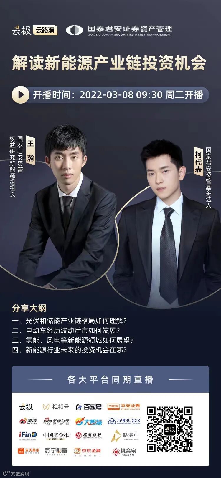 曾就职于安信证券、中泰证券,现任国泰君安资管新能源组组长