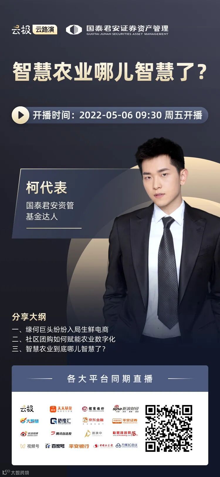 5月6日(星期五)国泰君安资管直播间,国泰君安资管基金达人柯代表将为大家倾情讲解,不见不散!