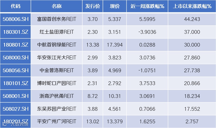 截至12月17日,首批九只基础设施整体市值上涨19.20%,其中首创水务REIT涨幅最大,上市至今涨幅高达44.24%,九只REITs平均上涨幅度也达到25.14%。