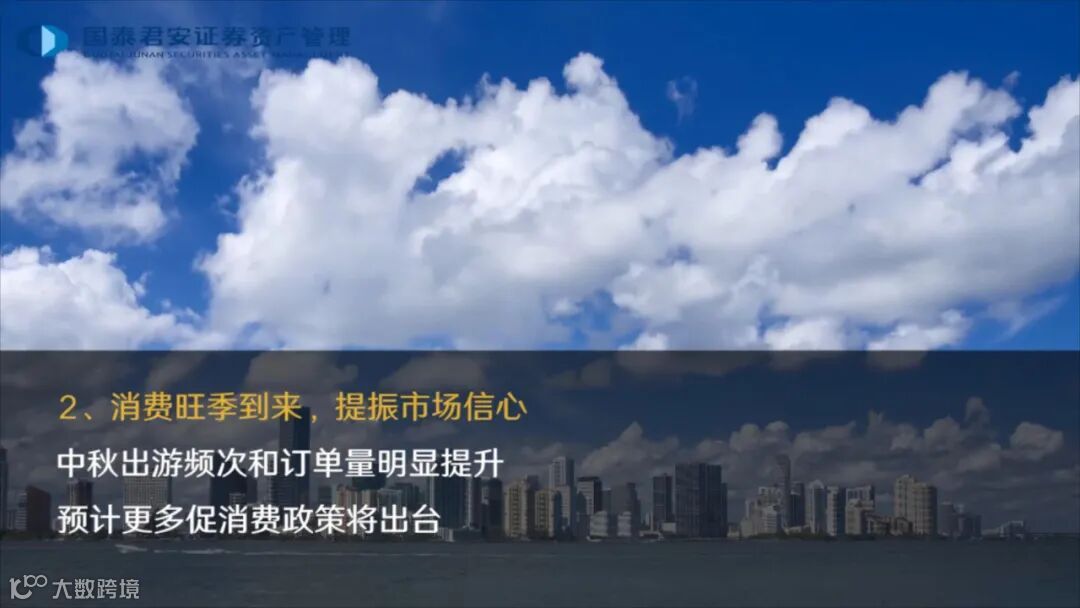 今年中秋餐饮、旅游、酒店等可选消费板块回暖,对提振整体消费信心意义重大。后续来看,预计将会出台更多促消费政策,抓住“金九银十”、岁末年初消费旺季的有利时机,聚焦汽车、家电、家居、餐饮等重点领域,推动消费市场稳步复苏。