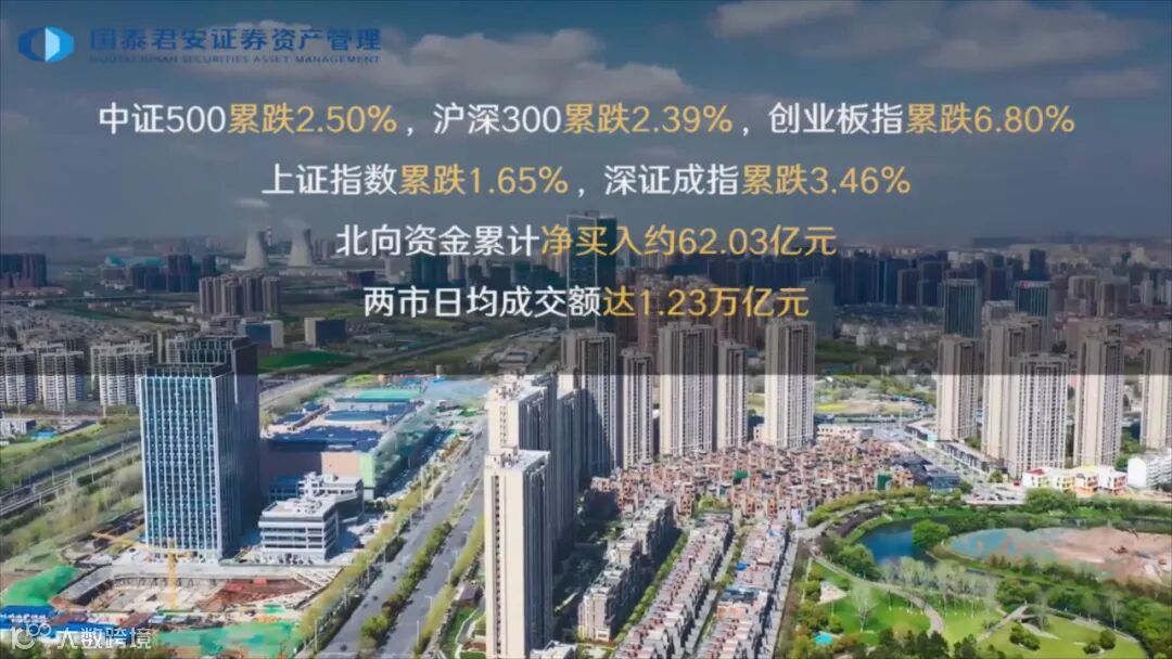 上周A股整体均下跌。中证500累跌2.50%,沪深300累跌2.39%,创业板指累跌6.80%,上证指数累跌1.65%,深证成指亦下跌,周累计跌幅为3.46%。上周北向资金累计净买入约62亿元,两市日均成交额达1.23万亿元。