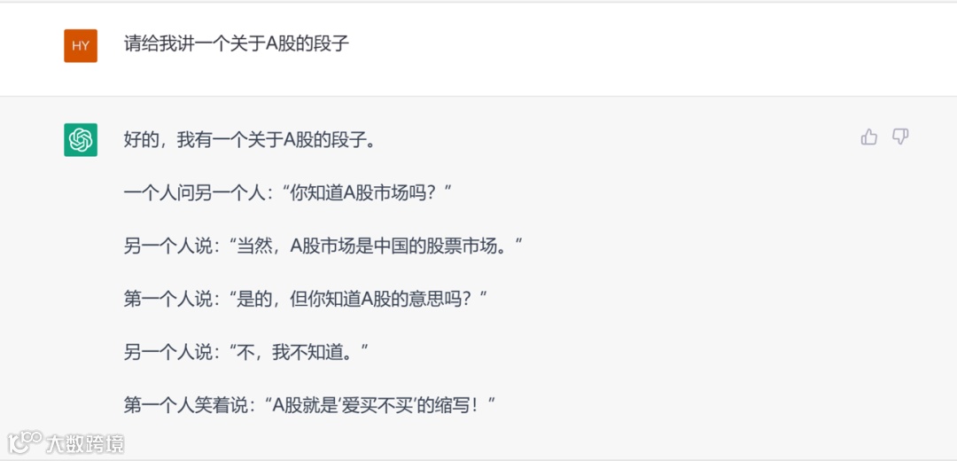 A股市场从来不缺令人捧腹的段子,ChatGPT也能化身段子手,在紧张的市场浮沉中带来一丝安慰。