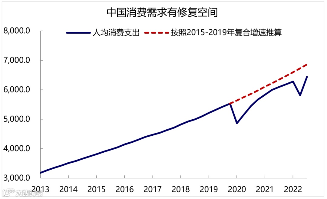 政策层面,党的十九大报告提出“以供给侧结构性改革”为主线。十九大以来,中国在防控金融风险、加强环保建设、减少投资依赖等“减法”方向取得了诸多成效。党的二十大报告指出“物质基础是建设社会主义现代化强国的一个重要基础” ,并且明确提出“把实施扩大内需战略同深化供给侧结构性改革有机结合起来”。相比于十九大报告当时集中深化供给侧结构性改革,二十大报告明确提出要实施扩大内需战略,可以关注后续的需求侧政策,尤其是未来半年可能把“稳增长”摆在比较重要的位置。