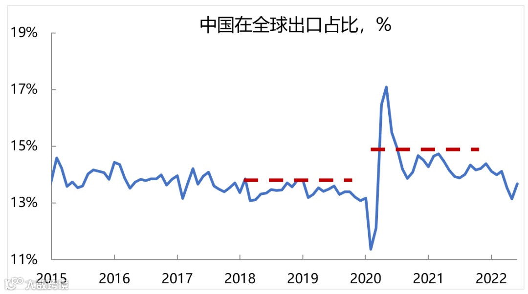 图:中国出口份额尚未回到2019年底的水平
