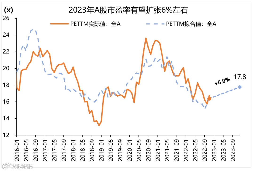 当前,经济降速期已过,市场对经济体感或边际改善。2012年GDP增速首次破8,此后进入6-8%区间,中国银行研究院预测2022年增速将从5-6%区间降到3%左右,所以实体经济感受和市场表现都存在一定落差。在经历了2022年的降速之后,2023年经济“底部企稳”。2020年疫情冲击之后,中国经济率先复苏提振了对于中国经济的信心。而2022年在疫情再次超预期、地缘冲突、地产风险等多重问题的冲击下,经济降速对于市场信心的冲击较大。预计到2023年,考虑到低基数的效应,即使以2019年Q4弱经济的环比推算,未来的GDP同比也将企稳改善,市场对经济体感或边际改善。