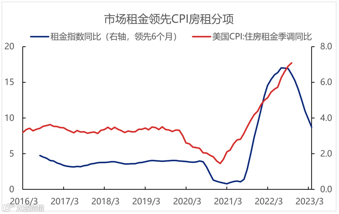 美欧通胀已经进入下行通道,2023年下半年在基数效应作用下或明显下台阶。从需求端看,伴随着货币政策的持续紧缩,整体需求降温是大势所趋;从供给端看,约束也有望进一步改善:1)物流缓解的拥堵已经进入趋势性改善通道,商品供给端约束有望进一步纾解;2)得益于2022年的高基数,能源通胀很可能将在2023年明显下行;3)住房租金占比核心CPI超40%,市场租金价格领先CPI房租分项半年左右,已经见顶回落。