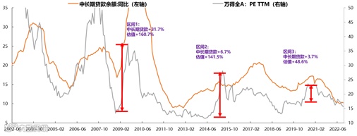 图:中长期贷款增速与A股估值高度相关