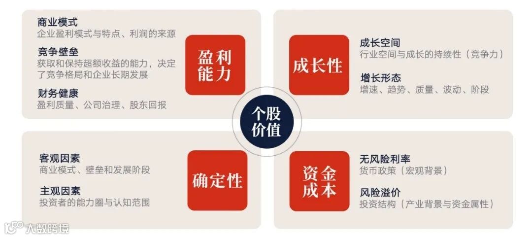 选股能力如此优秀的一位基金经理,在选股时如何对个股的价值进行界定呢?常远精心构建了四维定价模型:从盈利能力、成长性、确定性、资金成本等四大维度考察公司,进行个股定价,注重寻求成长性和确定性之间的平衡。