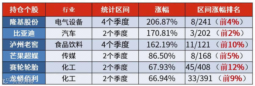 常远管理以来重仓2-4个季度的个股涨幅领先同行业股票