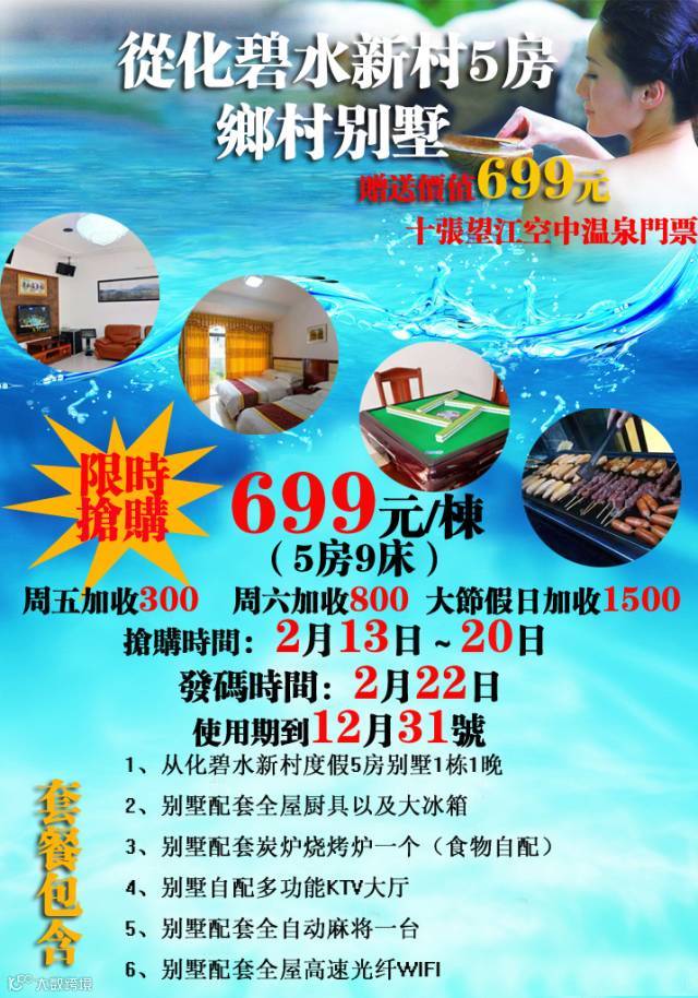 周五加收300元/栋,周六加收800元/栋,大节假日加收1500元/栋
