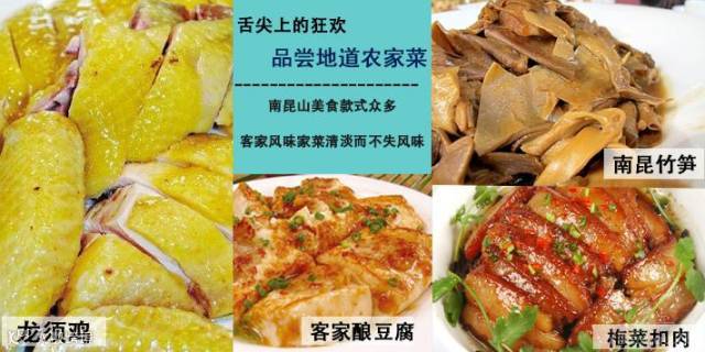 风味独特的客家菜式梅菜扣肉、客家酿豆腐、龙门胡须鸡、南昆竹笋等菜式都是不可错过的。
