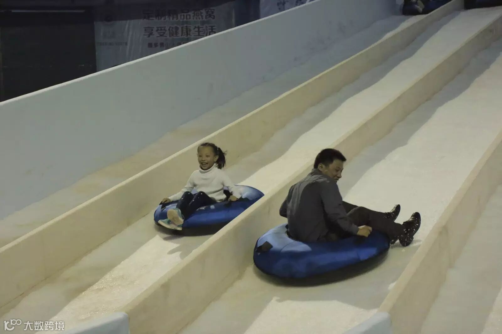 大小孩也“争抢”着尝试滑雪道的乐趣!