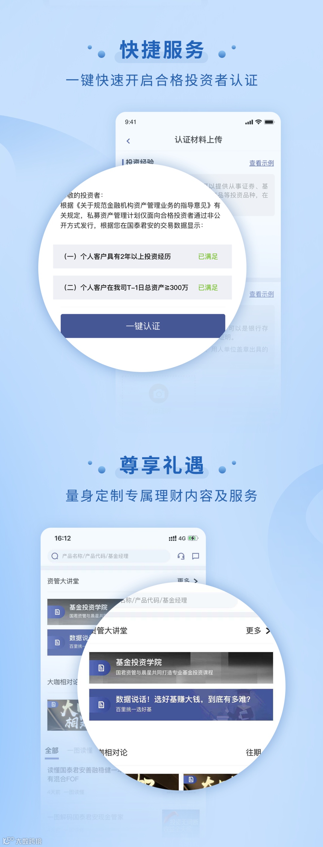 焕新升级的直销+APP在优化原有功能模块的基础上,匠心打造专属高净值客户的高端理财专区,甄选国泰君安资管引以为傲的明星私募小集合产品,助您更好的配置资产,守护财富!