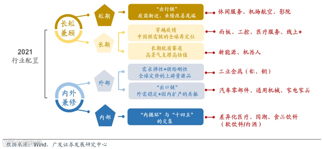 2021年中国与全球修复更为共振,我们对21年行业配置的思路概括为“长短兼顾,内外兼修”。