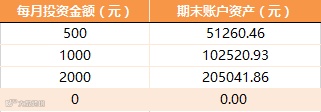 没想到吧,每个月仅投入500元,最后账户中竟然能积累5万多的资金;而若是每个月投资1000元或是2000元,最后账户总额就能达到10万,甚至是20万以上。