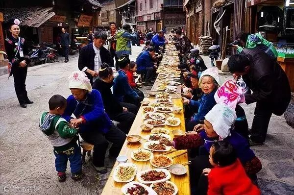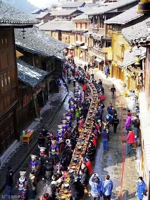 【西江千户苗寨】寨内有1285户苗家的木质吊脚楼依山而建,层层相叠,气势恢弘。由于聚居着众多的苗族人,被誉为“苗都”,苗族刺绣、苗族银饰、苗族古歌和苗族吊脚楼等被列入首批国家级非物质文化遗名录。品尝苗家特色餐——长桌宴:苗族接待贵宾的最高礼仪!