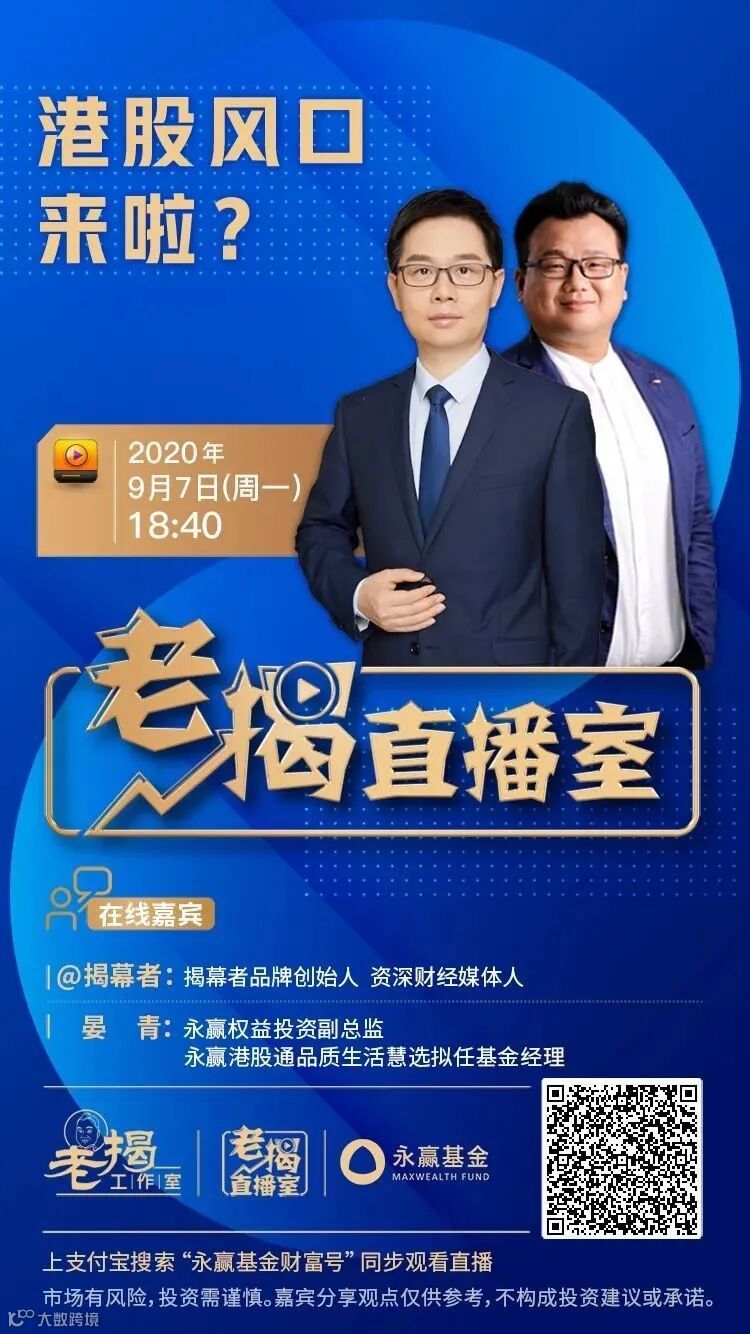 别急!9月7日晚18:40分,永赢基金权益投资部副总监晏青将与投资圈大V老揭对话,在老揭直播室进行现场直播,和大家一起聊聊投资港股的风口。小伙伴们,闹钟订好了吗?!
