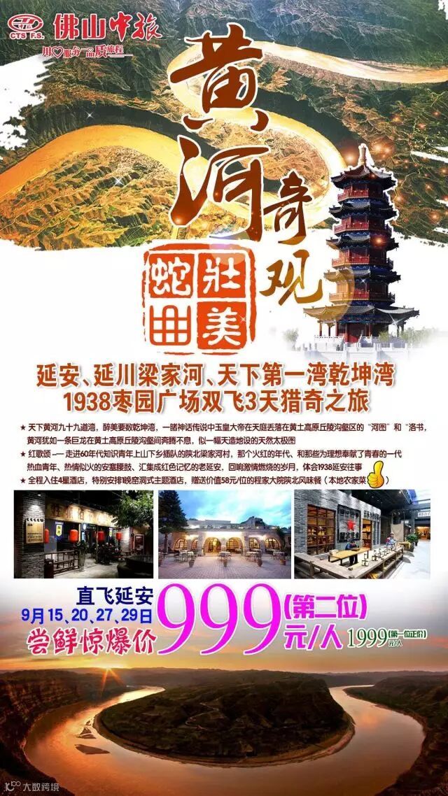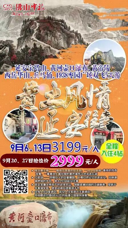 黄土风情延安双飞5天+黄河传期3天!