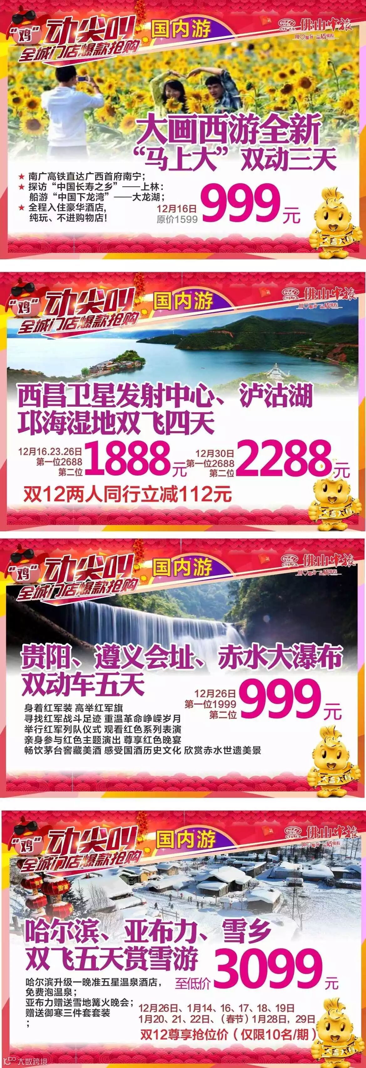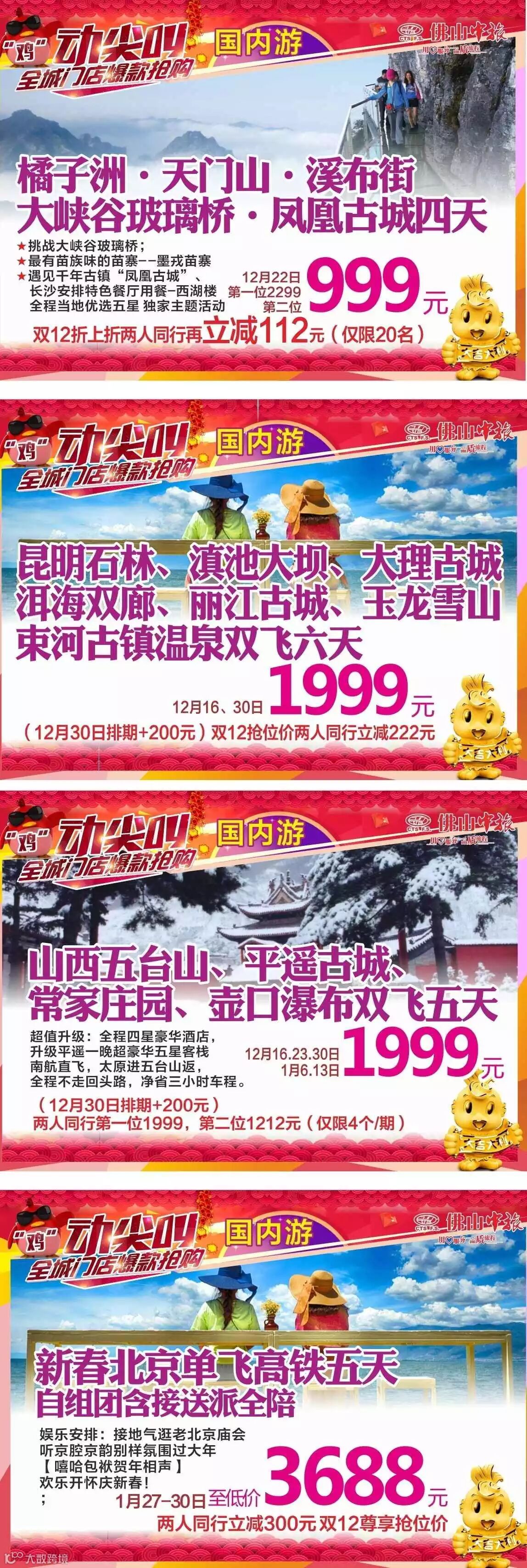 关注佛山中旅微信,发送关键字【双12热卖】,获取热卖会优惠密码,完成后报名至高再立减100元,仲有精美礼品送!